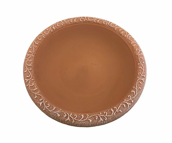 Large bird bath adds understated elegance and functionality to the garden. Features contrasting mat rim with textured design that entices birds for easy landing and perching.Â