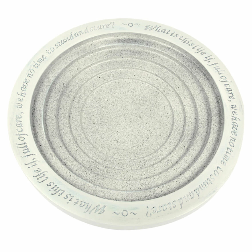 Stone look makes the perfect garden feature, with step design offering ultimate safety for young birds. Pollinators may sip from the shallow pool edge which is embossed with verse from the W. H. Davies poem ‘Leisure’.
